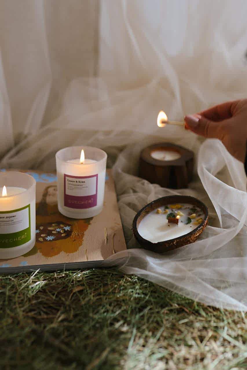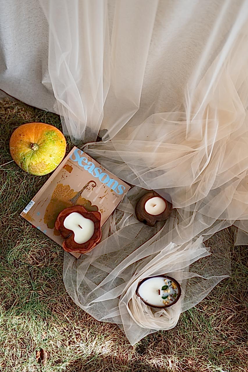 Анастасия прислала свечи заранее: я взяла немного времени с запасом, чтобы продумать и закупить реквизит, подготовить Pin-Up Всего на реализацию ушло три съемочных дня. Идеи были максимально разные по стилю и локациям: мне хотелось сделать что-то максимально необычное. То, что выделяло бы бренд Насти среди других.