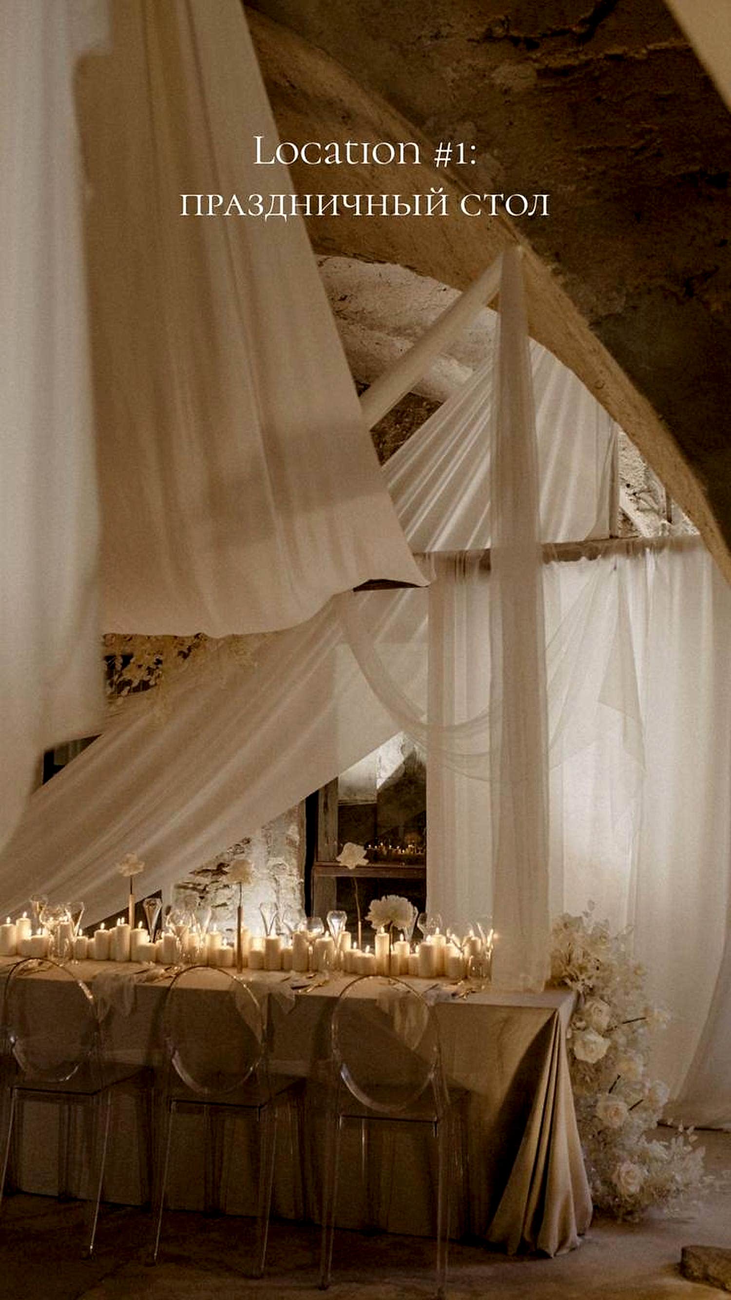 Стол будет Pin-Up живыми цветами, посудой ручной работы от Петербургского керамиста и тканевыми летящими полотнами, свисающими с высоты 2,5 метра, создавая потрясающий визуальный эффект.